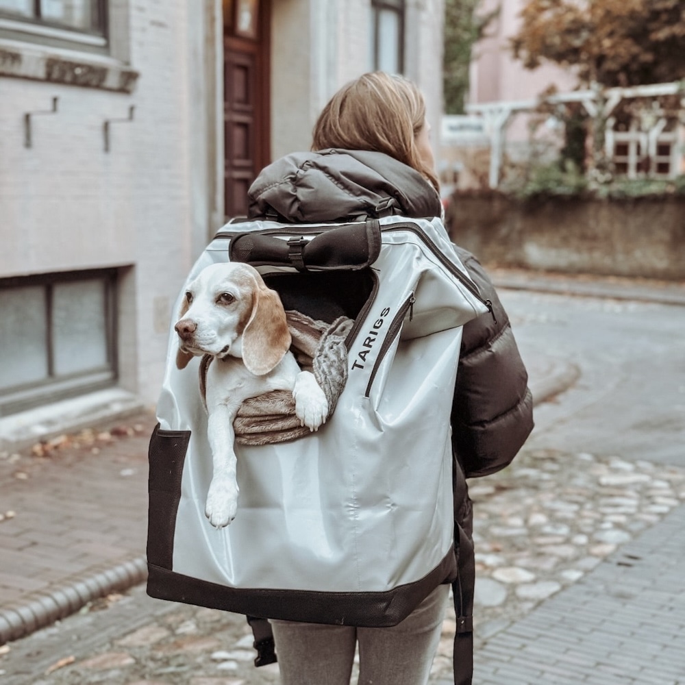 Take your four-legged friend with you wherever you go! The dog carrier backpacks by TARIGS are perfect for all city slickers and nature lovers. Whether it’s a dog or a cat, your beloved four-legged friend will definitely enjoy it and join you on every adventure! We took care of every detail. No escapades and no hurdles! Whether ambitious hikes or challenging mountain bike tours, a trip by bus or train, an extended walk or the next city trip with your four-legged friend… you are always together on the road! Simply put your fur nose inside the backpack, clip to the carabiner and you are ready to go! Get your dog backpack now at TARIGS! Choose between the MountainRock Backpack, the PeakStone Backpack, the Dachshund Backpack, the Bulldog Backpack and the ROOFPACKER.